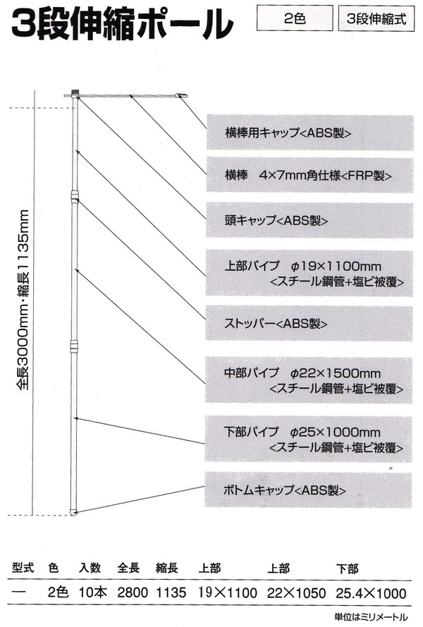 HOME>のぼり・のぼり装飾関連>3段伸縮ポール