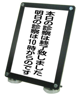 | ●サインの取付け交換は、まず化粧ビスを取り外し2mm厚の透明のアクリル板を取り外して頂き3mm厚の白のアルミ複合板に貼り付けるだけなので、交換がとても簡単に行うことが出来ます。 | |