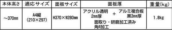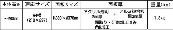 | ● アクリル板サイズ:H370×280mm φ10穴×4ヶ所 | |