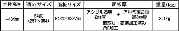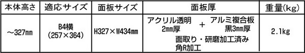 | ● アクリル板サイズ:H327×434mm φ10穴×4ヶ所 | |