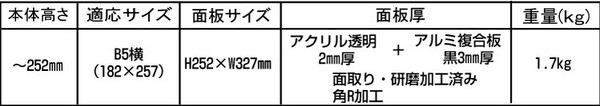 | ● アクリル板サイズ:H252×327mm φ10穴×4ヶ所 | |