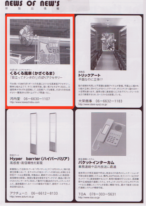 連続59ヶ月目 2010年1月掲載 P22 商品: ”カラーポール” →詳細はこちら← |