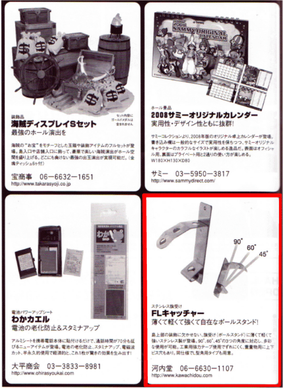 連続69ヶ月目 2010年11月掲載 P54 商品: ”コイルガイドキャッチ” ”ガイドキャッチ(フックタイプ)” →詳細はこちら← |