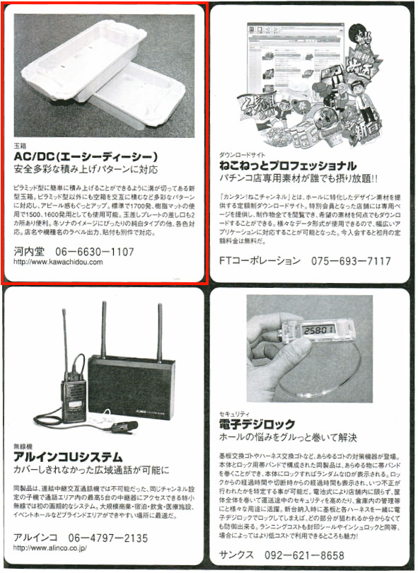 連続62ヶ月目 2010年4月掲載 P60 商品: ”カウンタースタンドモアイサークル” →詳細はこちら← |