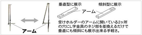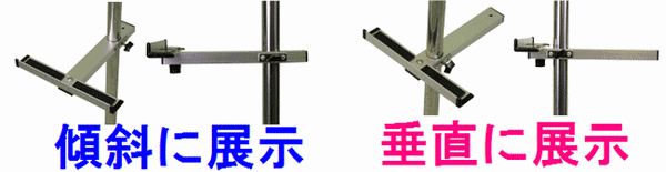 アームを回転させる事で、垂直にも斜めにも展示可能です。 |