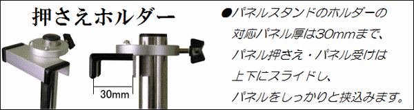 | ●PAシリーズのパネルスタンドは、下記の参考写真1のようにパネルを垂直にも傾斜にも展示可能な機能性を持ったパネルスタンドです。パネルを支える上下のホルダー位置を簡単に調節できるので様々な大きさのパネルに対応できます。 |