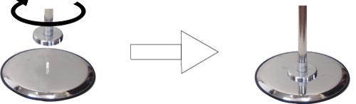 | ●出荷・梱包時は、脚部とポール本体を取り外した状態でお届け致しますので鉄板の真ん中から出ているネジにポール本体ネジ穴に差し込み右に回して固定して下さい。(工具不要で組立可能です) | |