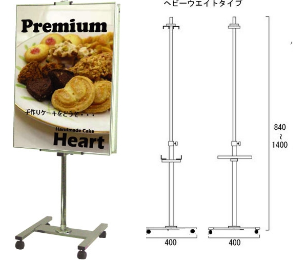 | ●パネルを両面に垂直に展示可能な機能性を持ったパネルスタンドです。 パネルを支える上下のホルダー位置を簡単に調節できるので様々な大きさのパネルに対応できます。 (B2、A1サイズが最適パネルサイズとなります。) (※パネルを垂直に展示できますが、傾斜に展示する事はできません。) |