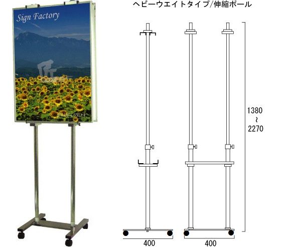 | ★ パネル長さ:上下ホルダーのスライドでポール全体で対応可能 | |