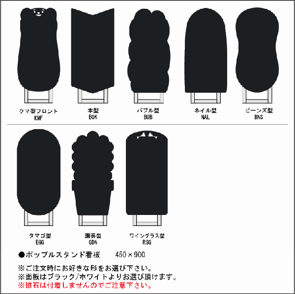 (※形により多少高さが上下致します。) ●面板サイズ:W440×H890mm ●面板の色:ブラック/ホワイト 面板の材質:アルミ複合板(黒/白)+特殊フィルム加工 ●抜きスタイルは指詰め事故防止の為に 背面に透明の塩ビシートを貼っています。 ●本体:アルミ押し出し材/アルマイト仕上 ●対応ウエイトアーム:SKW-A(別売) ※屋外でご使用の際は耐水性のマーカーをご利用下さい。 ※マーカーは別売です。付属されておりません。 ※面板の材質により、マグネットはつかない仕様となっております。 |