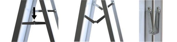 | ・スタンド看板の収納方法はとっても簡単、ステイのジョイント部分を上の参考写真の様に上から下に押し込み、脚部が重なり合わさるまで押し込んでいただき、右の写真の様になると完了です。 | |||||||||||||